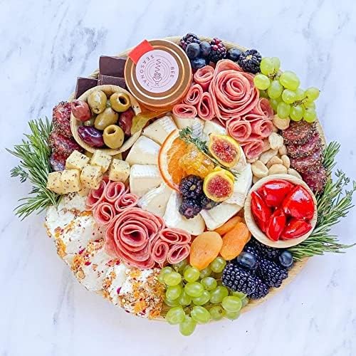 Nutrichef Bamboo Natural Cheese Board Set with Bonus Condiment Cup-Extra Large Size 100% Home Organic Wooden Plate and Charcuterie Tray with 4 Pcs Cutting Knife Slicer, 13" Round