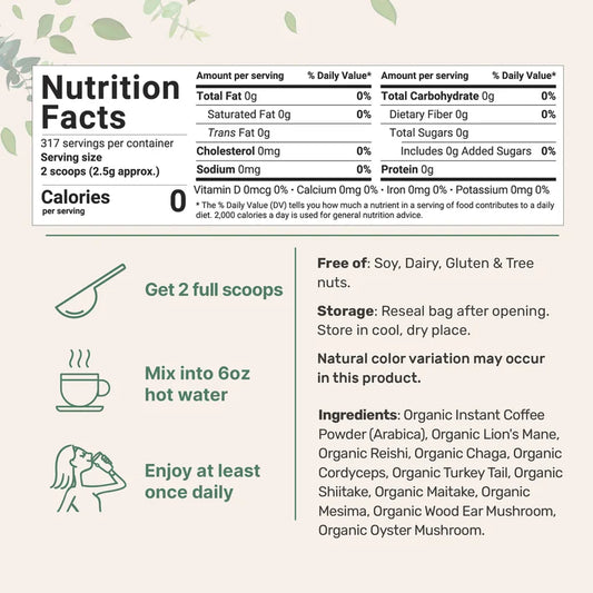 Mushroom Coffee – Energy & Focus Blend with Lion’s Mane, Chaga & Cordyceps