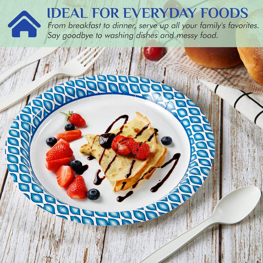 MUCHII 8.375 Inch Disposable Paper Plates, 300 Count Soak and Cut Proof Printed Paper Plates for Daily Use, Holiday for Family Gatherings, Parties, Picnic