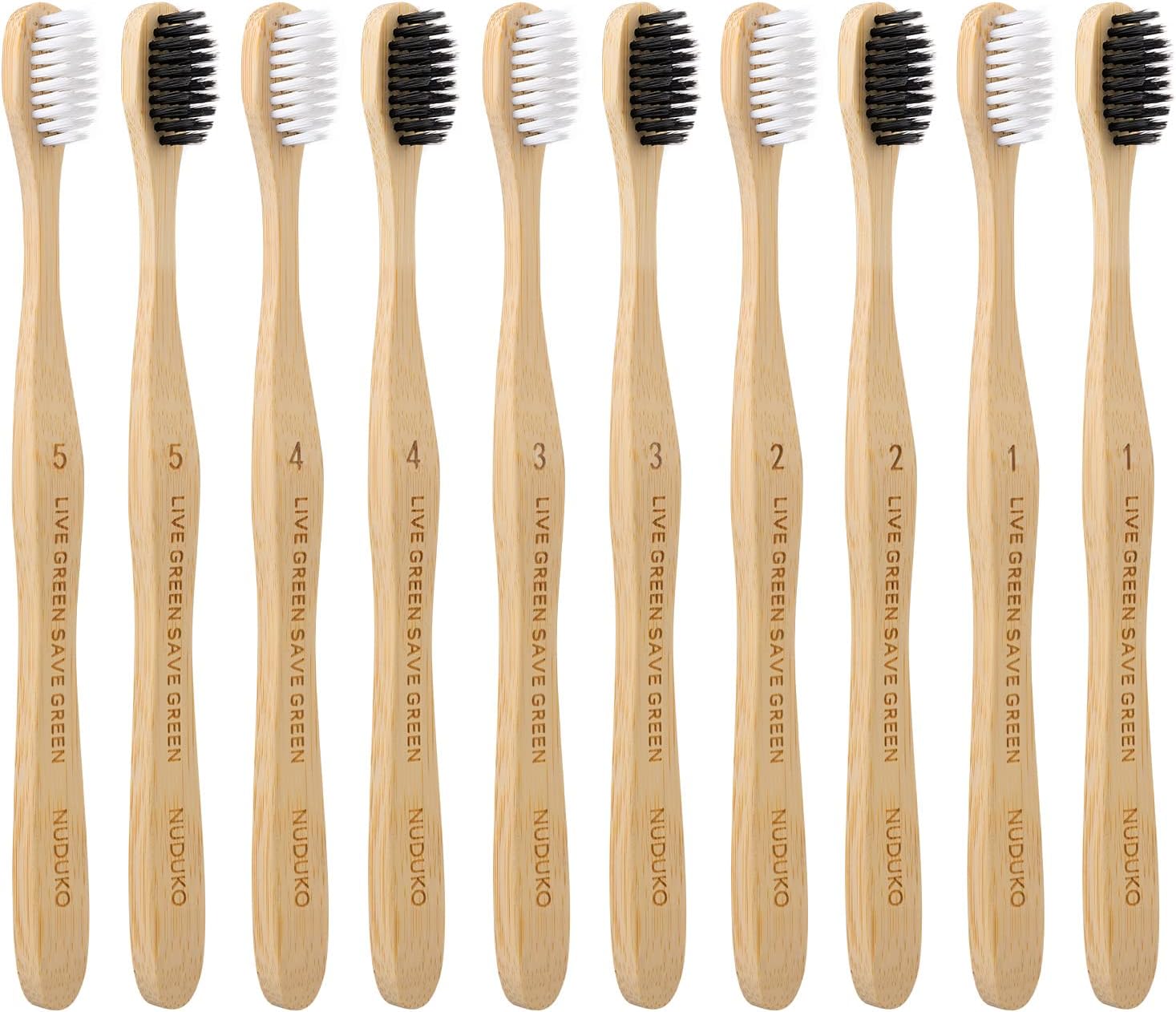 Bamboo Toothbrushes Soft Bristles, Biodegradable Eco-Friendly Toothbrush 10 Pack, BPA Free Charcoal Bamboo Tooth Brush, Organic, Natural, Green and Compostable Tooth Brushes