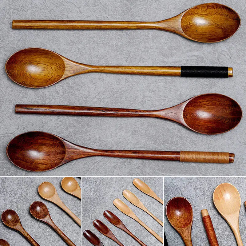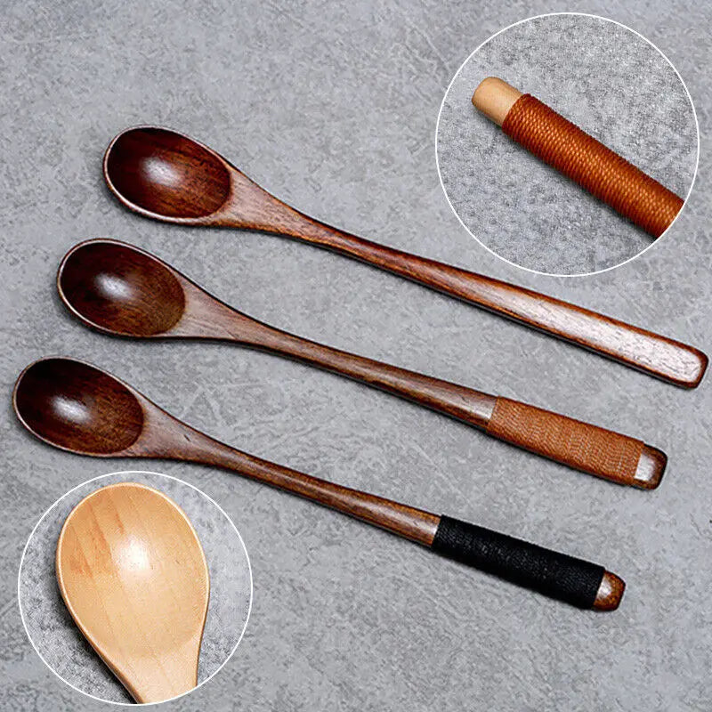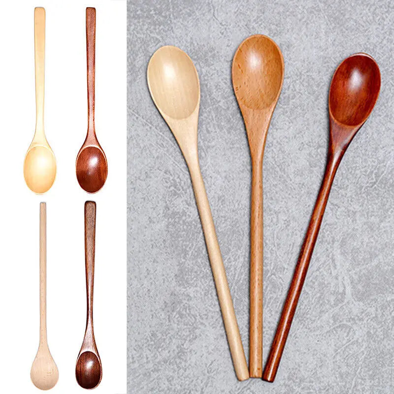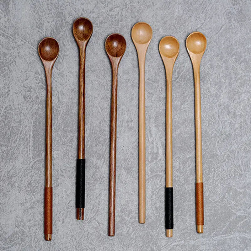 Cutlery Wooden Long Handle Spoon Coffee Teaspoon Dessert Honey Stirring Spoons