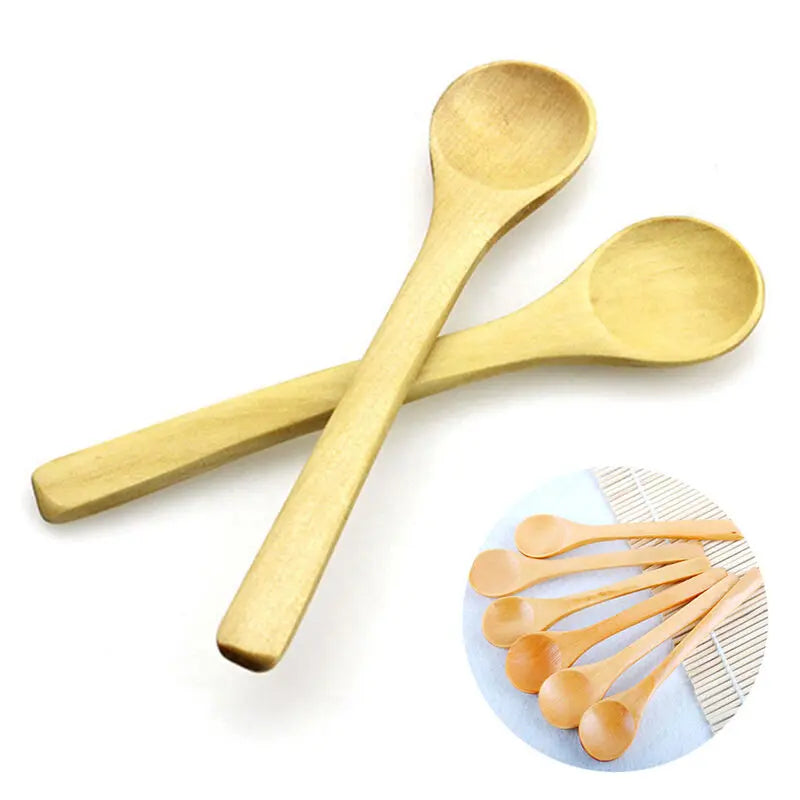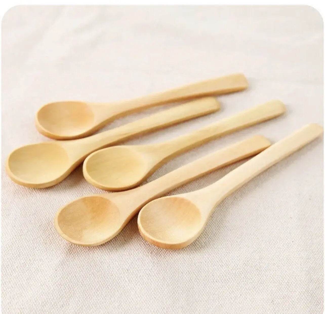 - VERSATILE - Includes 5 bamboo mini-spoons that can be used for a variety of purposes such as stirring tea & coffee, adding spices, and serving desserts; Elegant, smooth design helps enhance kitchen aesthetics w/ natural beauty