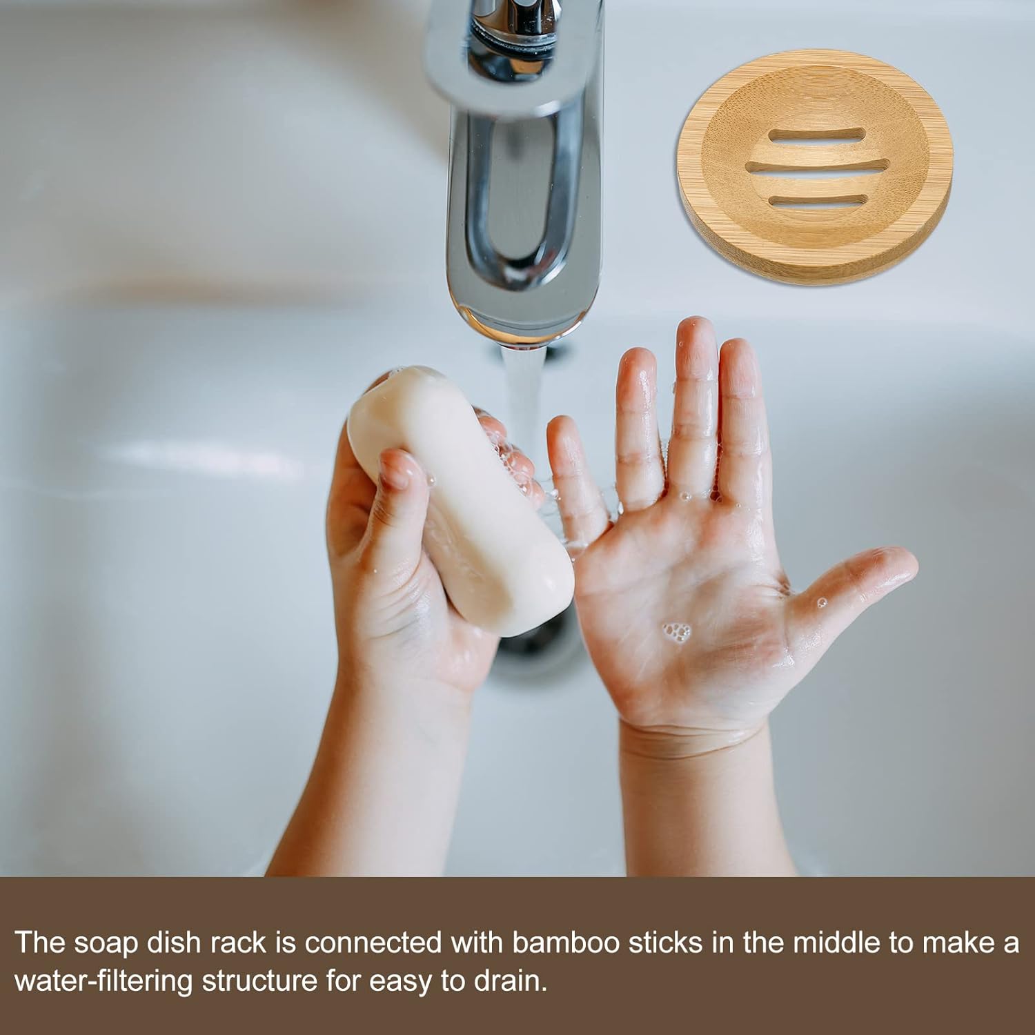 - [Drain Design]: The soap dish rack is connected with bamboo sticks in the middle to make a water-filtering structure for easy to drain, and soap is not easy to dissolve, which is designed to keep your soap clean and dry.
